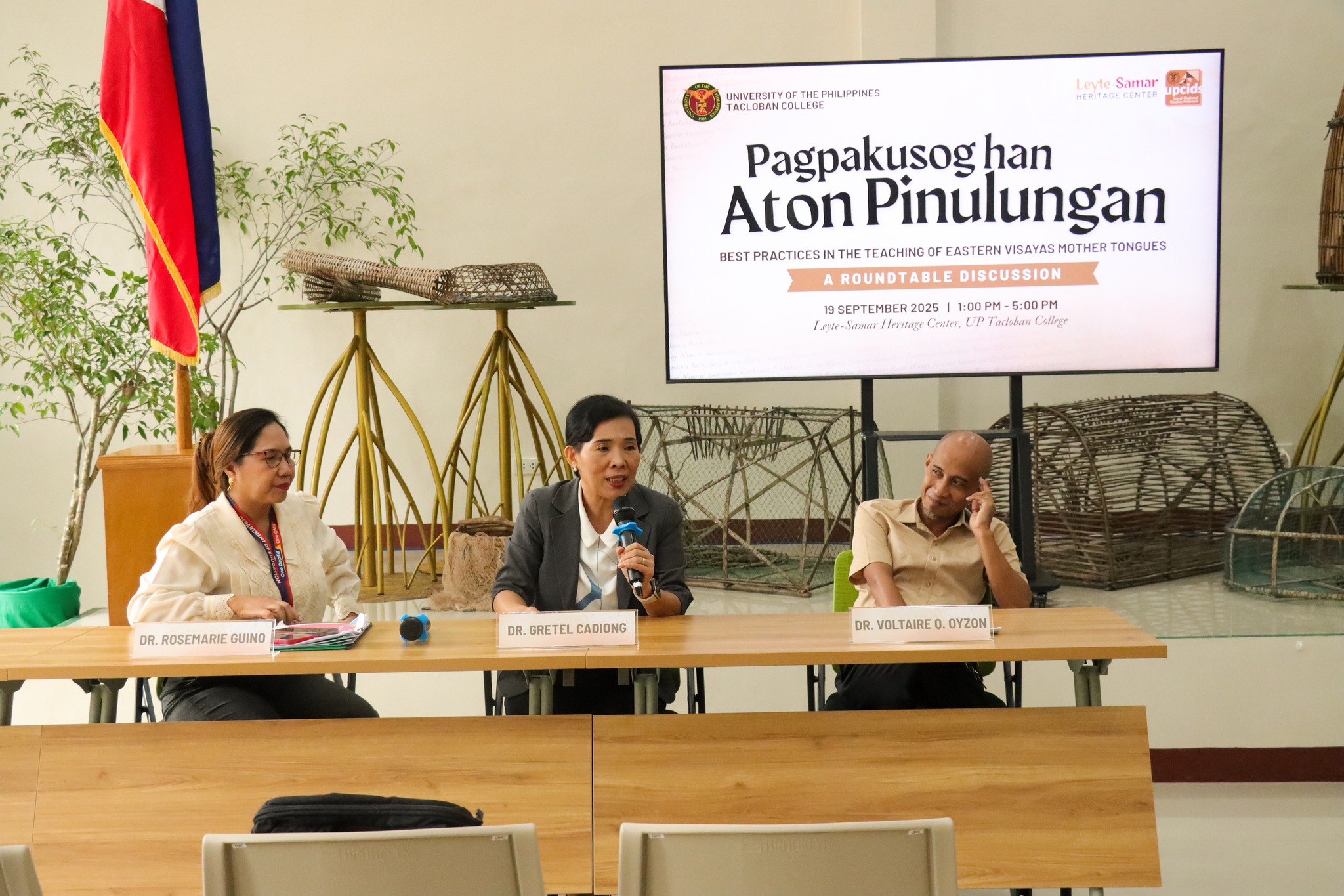 UP Tacloban’s Leyte-Samar Heritage Center (LSHC) held a roundtable discussion titled “Pagpakusog han Aton Pinulungan: Best Practices in the Teaching of Eastern Visayas Mother Tongue” on 19 September 2025 at the LSHC Gallery. Around 100 participants attended, including faculty and students from UP Tacloban, Leyte Normal University, and Eastern Visayas State University.