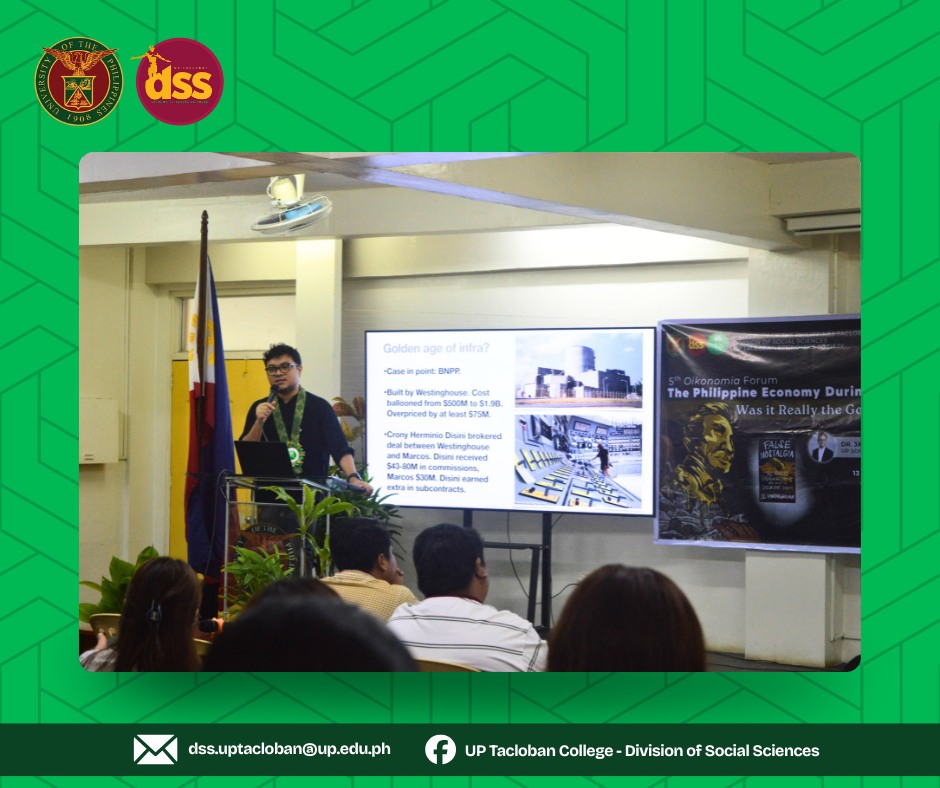 UP Tacloban’s BS Economics program and Economics Society held the 5th Oikonomia forum, “The Philippine Economy During Martial Law: Was it Really the Golden Age?” on 13 September 2025 at the AS Conference Hall. Dr. Jan Carlo Punongbayan of the UP School of Economics examined the Marcos-era economy, using facts and data to challenge prevailing myths and insights drawn from his book “False Nostalgia.” The forum coincided with the 53rd commemoration of the declaration of Martial Law in the Philippines.